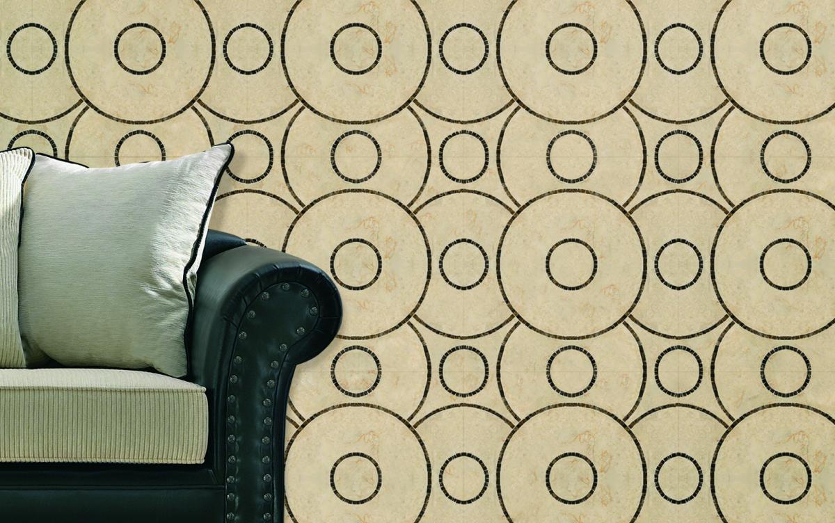 Могут использоваться как для стен, так и на пол. Плитка (600х600 мм с узором «Круги»)